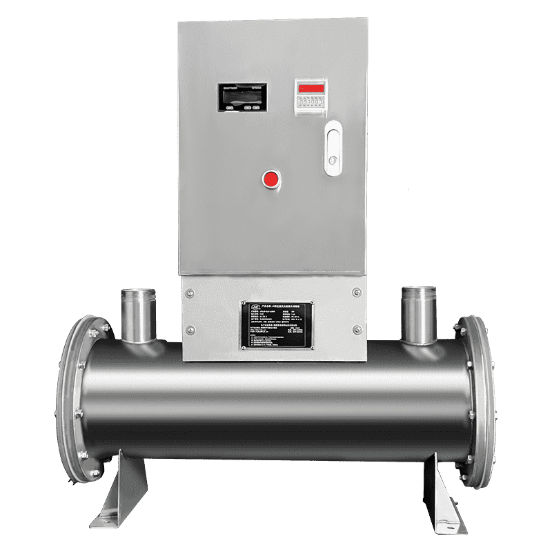 本产品为新型管道式水处理设备,由无极紫外消毒系统、反应腔体、智能控制系统、流量调节系统组成。消毒系统采用本公司发明专利无电极紫外线光源(专利号:ZL201010274516.7),该光源发出253.7nm 紫外线,可直接浸入水下作业,增强消杀效果;能快速灭活水中大肠杆菌、金黄色葡萄球菌、病毒等常见微生物,杀菌率高达99.9%。