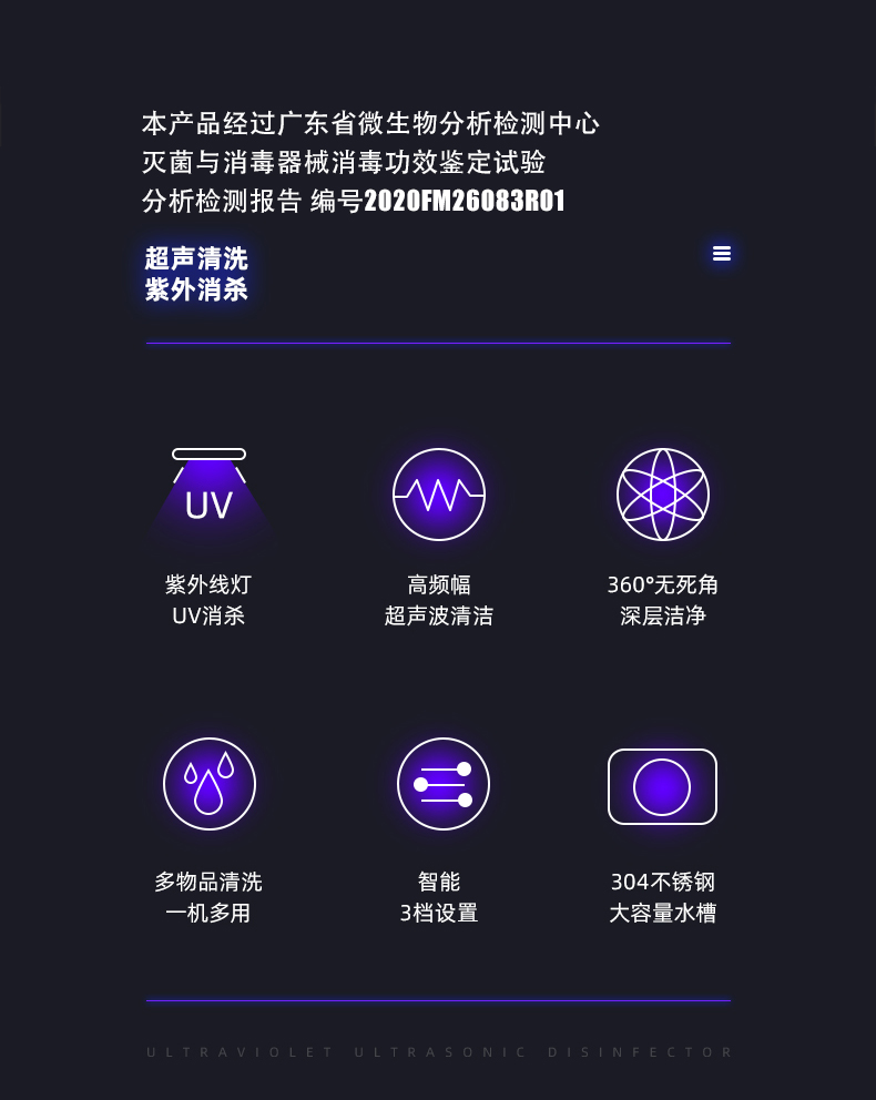 超声波深层清洗 紫外线高效杀菌