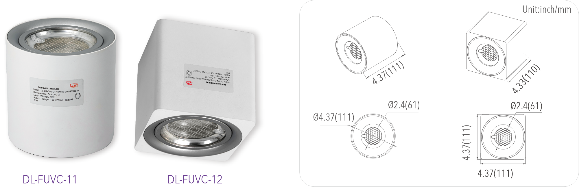 Compact and light weight: The standard 4” luminaire with weight of less than 1 kg (2.2 pounds) suitable for any indoor areas without interfering the original design style for new construction or renovation.