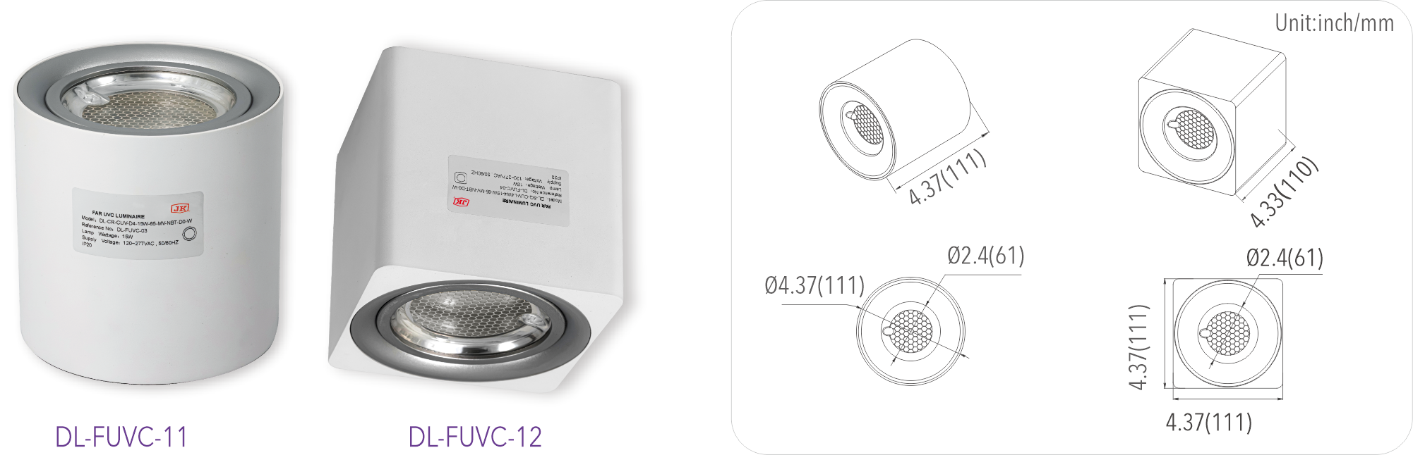 Compact and light weight:The popular compact size ad light weight of the far UVC down light makes them suitable to be installed in any indoor areas without interfering the original design style for new construction or renovation.